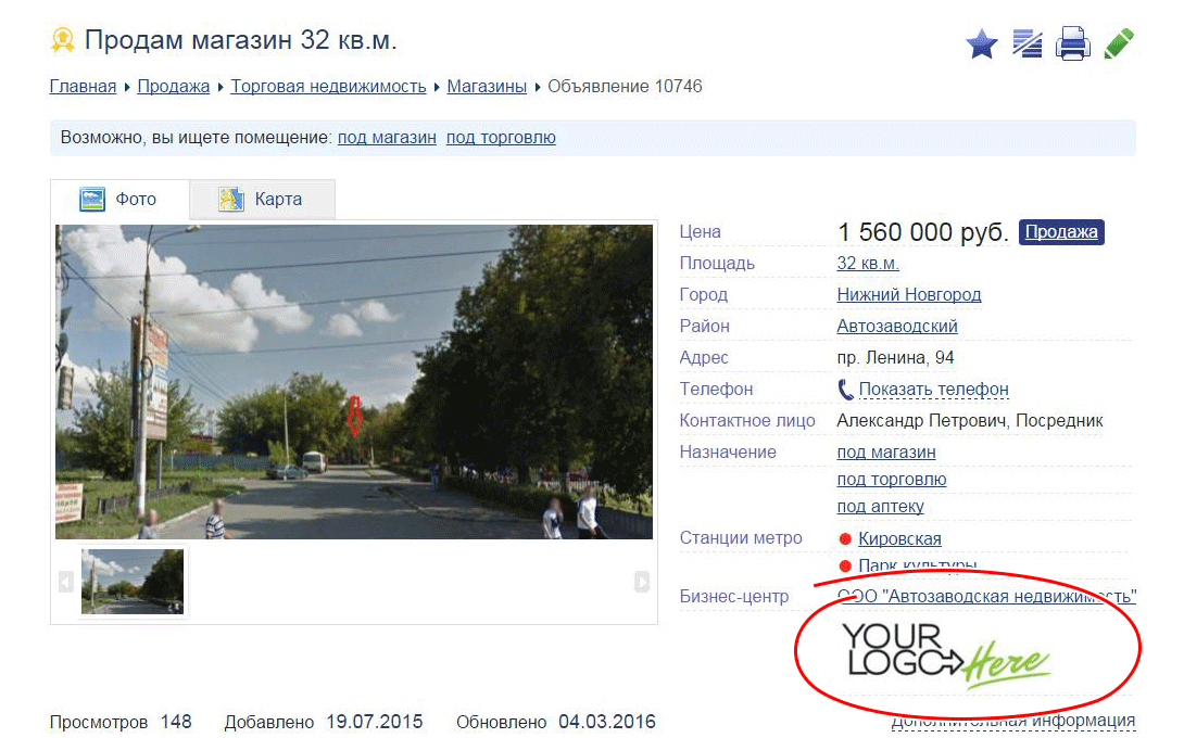 На страницах всех объявлений "представителя" организации появится новое поле с названием и логотипом опубликованной организации.
