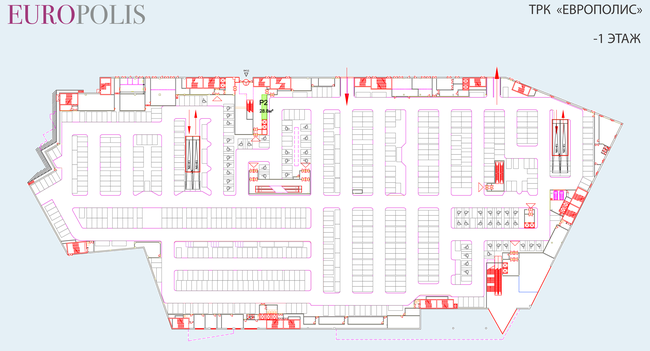 На нижних двух уровнях ТРК «Европолис» будет располагаться парковка на 1300 м/мест.